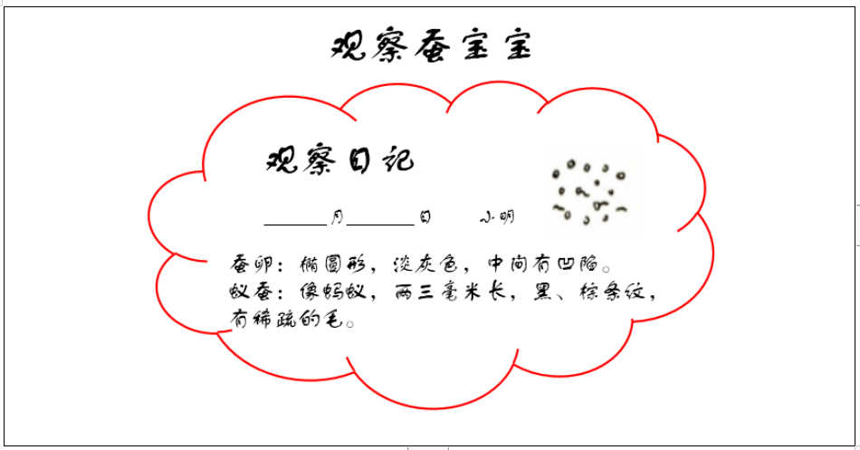 1.在每次日记之间还可以加上两次观察发现的变化,例如颜色逐渐变白、吃的桑叶逐渐增多;