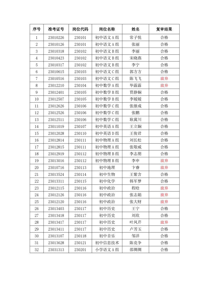 安徽教师招考网相关[教师招考] 信息“2023年固镇县中小学教师公开招聘现场资格复审递补人员复审结果”由官方发布 ,更多2023年,固镇县,中小学教师,公开招聘,现场资格复审,递补人员复审结果信息,请多关注微信好友:18110934621。
